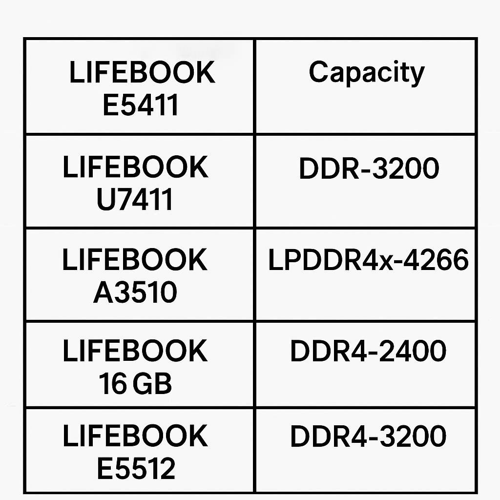 سری Lifebook تا 16 گیگابایت و سری UH تا 64 گیگابایت رم پشتیبانی میکند.