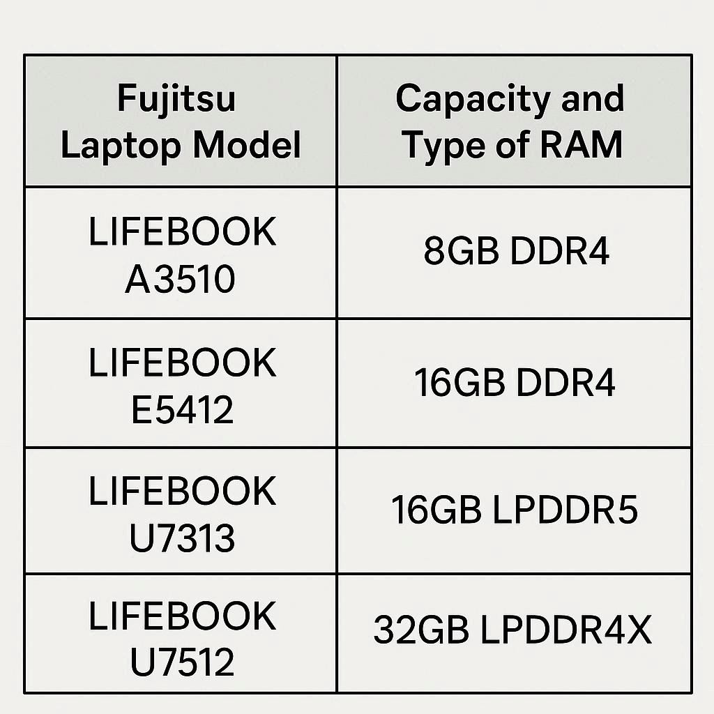بررسی ظرفیت و نوع رم در مدلهای فوجیتسو
