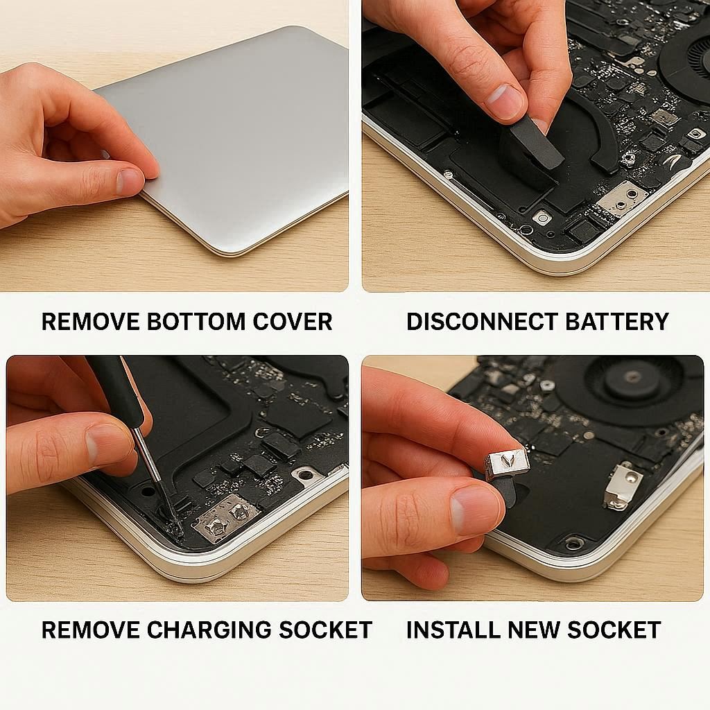 راهنمای تعمیر سوکت شارژ لپ تاپ اپل