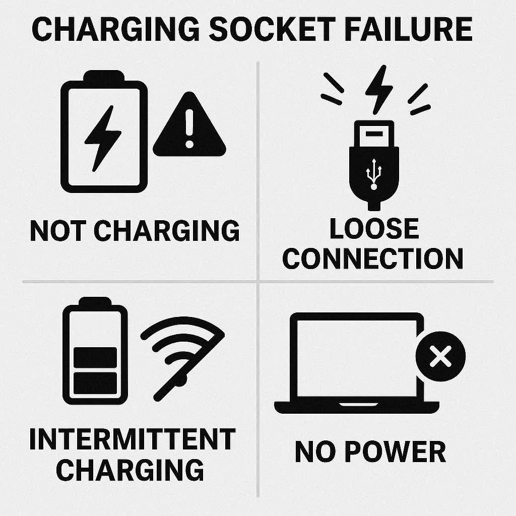 خرابی سوکت میتواند باعث شارژ ناقص و کاهش طول عمر باتری شود.