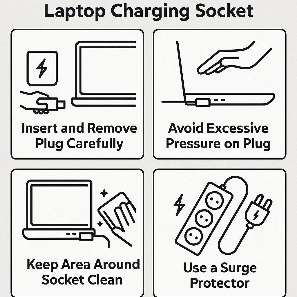 استفاده صحیح از لپ تاپ و مراقبتهای روزمره، مانند اتصال و جدا کردن کابل شارژ با دقت، جلوگیری از خم یا کشیده شدن کابل و استفاده از شارژرهای اورجینال، نقش مهمی در افزایش طول عمر سوکت دارد. همچنین، رعایت نکات حرفهای هنگام تعمیر یا تعویض سوکت، شامل تخلیه برق ساکن، استفاده از هویه با دمای کنترل شده، پاکسازی محل اتصالات و بررسی استحکام پایههای سوکت، باعث میشود عملکرد سوکت پس از تعویض پایدار و بدون مشکل باشد.