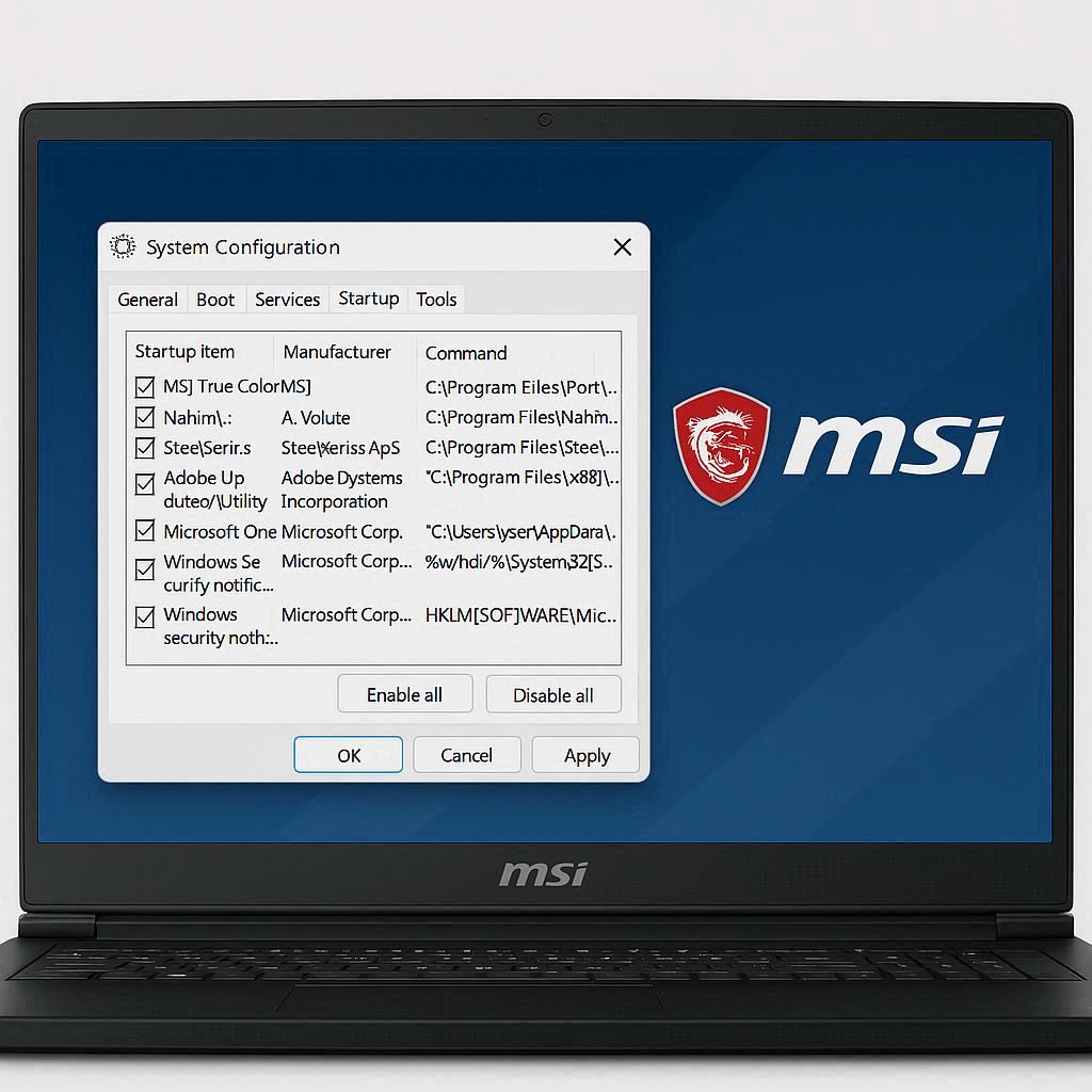 یکی از دلایل اصلی کند شدن لپ تاپهای MSI، اجرای بیش از حد برنامهها در پسزمینه و استارتآپ است. این برنامهها منابع پردازنده و حافظه رم را مصرف میکنند و باعث کندی و هنگی سیستم میشوند. برای رفع کندی و هنگی لپ تاپ ام اس آی، اولین قدم بررسی لیست برنامههای استارتآپ و غیر فعال کردن موارد غیرضروری است. کاربران مبتدی میتوانند با استفاده از Task Manager یا ابزار ساده MSI Dragon Center، برنامههای غیرضروری را شناسایی و مدیریت کنند. علاوه بر این، محدود کردن اجرای خودکار نرمافزارها هنگام روشن شدن لپ تاپ باعث آزاد شدن منابع و افزایش سرعت بوت سیستم میشود. حتی کاهش فعالیتهای پسزمینه مانند آپدیتهای خودکار و برنامههای مخفی، به روان شدن عملکرد لپ تاپ کمک میکند. رعایت این نکات ساده، اولین گام برای بهینهسازی عملکرد لپ تاپ MSI است.