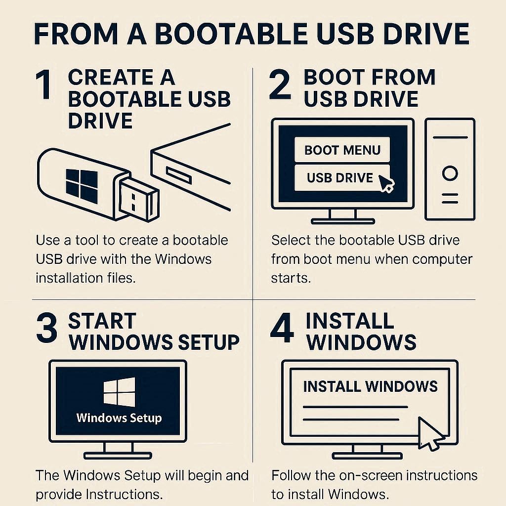 پس از آمادهسازی USB، نصب نسخههای مختلف ویندوز با USB شامل راهاندازی سیستم و ورود به Boot Menu است. ابتدا فلش بوتیبل را وصل کنید و با فشردن کلیدهای مربوطه (مانند F2، F12 یا Esc بسته به برند لپ تاپ) وارد BIOS شوید. ترتیب بوت را روی USB تنظیم کرده و سیستم را ریستارت کنید. در مرحله نصب، کاربران میتوانند پارتیشن بندی هارد، فرمت درایو و انتخاب نسخه ویندوز (Home، Pro یا Enterprise) را انجام دهند. برای کاربران حرفهای، تنظیمات پیشرفته مانند فعالسازی BitLocker و انتخاب فایلهای درایور مناسب نیز امکانپذیر است. رعایت دقیق مراحل و نکات حرفهای باعث میشود نصب هر نسخه ویندوز بدون خطا و با بهترین عملکرد روی لپ تاپ یا PC شما انجام شود و تجربهای سریع و بهینه از ویندوز جدید داشته باشید.