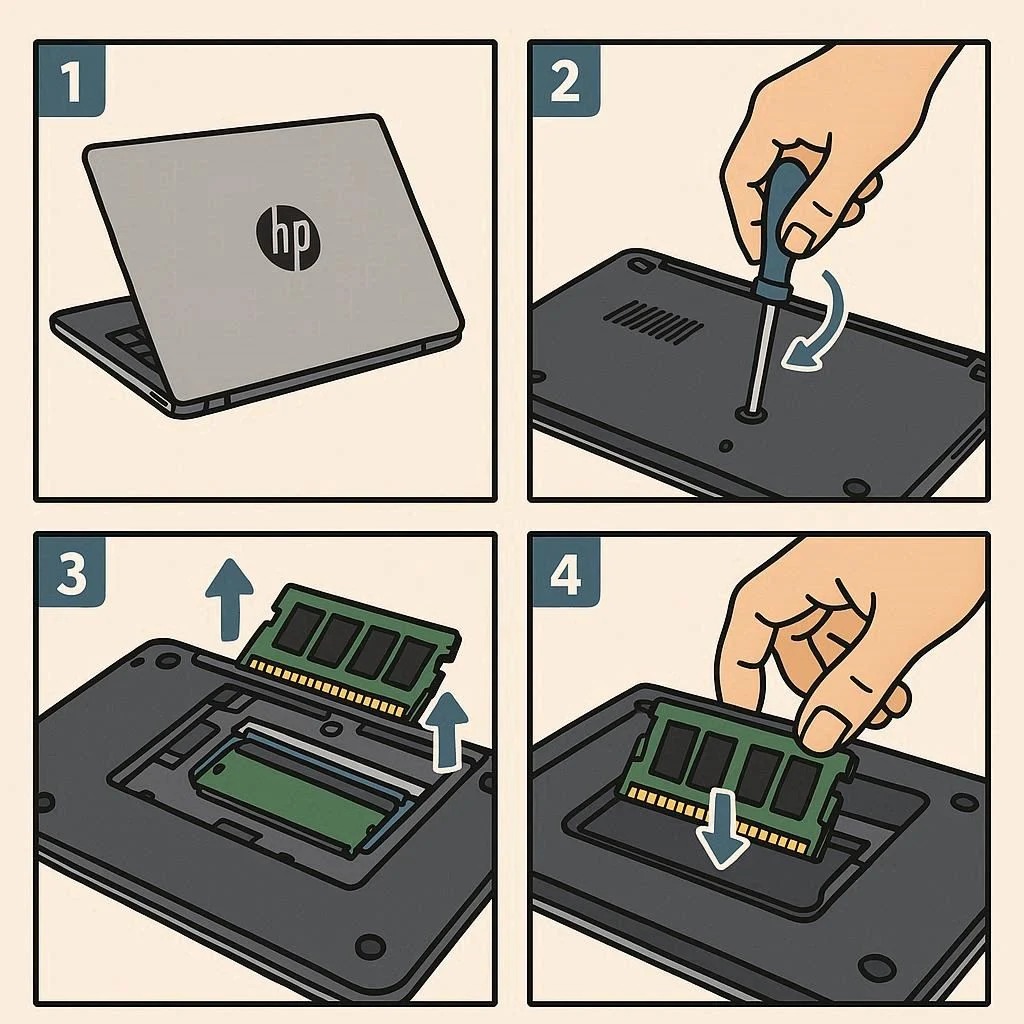 در ادامه این مقاله، تمامی جزئیات لازم برای ارتقا رم لپ تاپ اچ پی از شناسایی مدل، انتخاب رم مناسب، نصب، تا تست عملکرد بررسی خواهد شد تا هم کاربران مبتدی و هم حرفهای بتوانند از آن بهرهمند شوند و تجربهای بهینه و سریع از لپ تاپ HP خود داشته باشند.