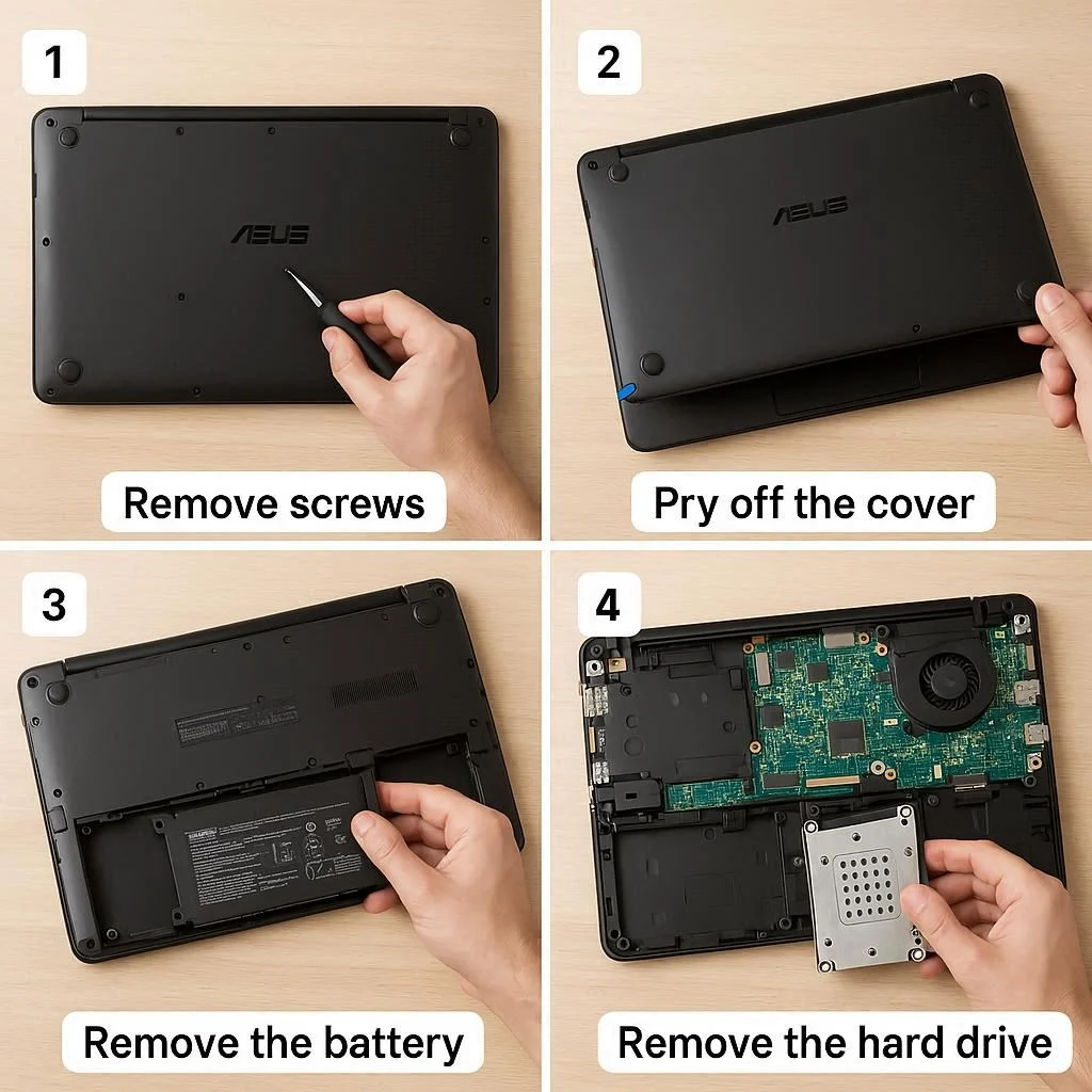 مراحل باز کردن لپ تاپ ایسوس برای ارتقا هارد
