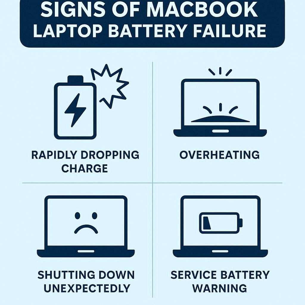 خرابی باتری معمولاً با علائمی مانند کاهش شارژدهی، خاموش شدن ناگهانی، نمایش پیغام Service Battery یا باد کردن باتری مشخص میشود. شناخت این علائم و اقدام به موقع باعث جلوگیری از آسیب به مادربرد و سایر قطعات حساس مک بوک میشود. همچنین، انتخاب باتری اورجینال و اجتناب از نمونههای غیراصل، تضمین کننده امنیت، شارژ پایدار و عمر طولانیتر دستگاه است.