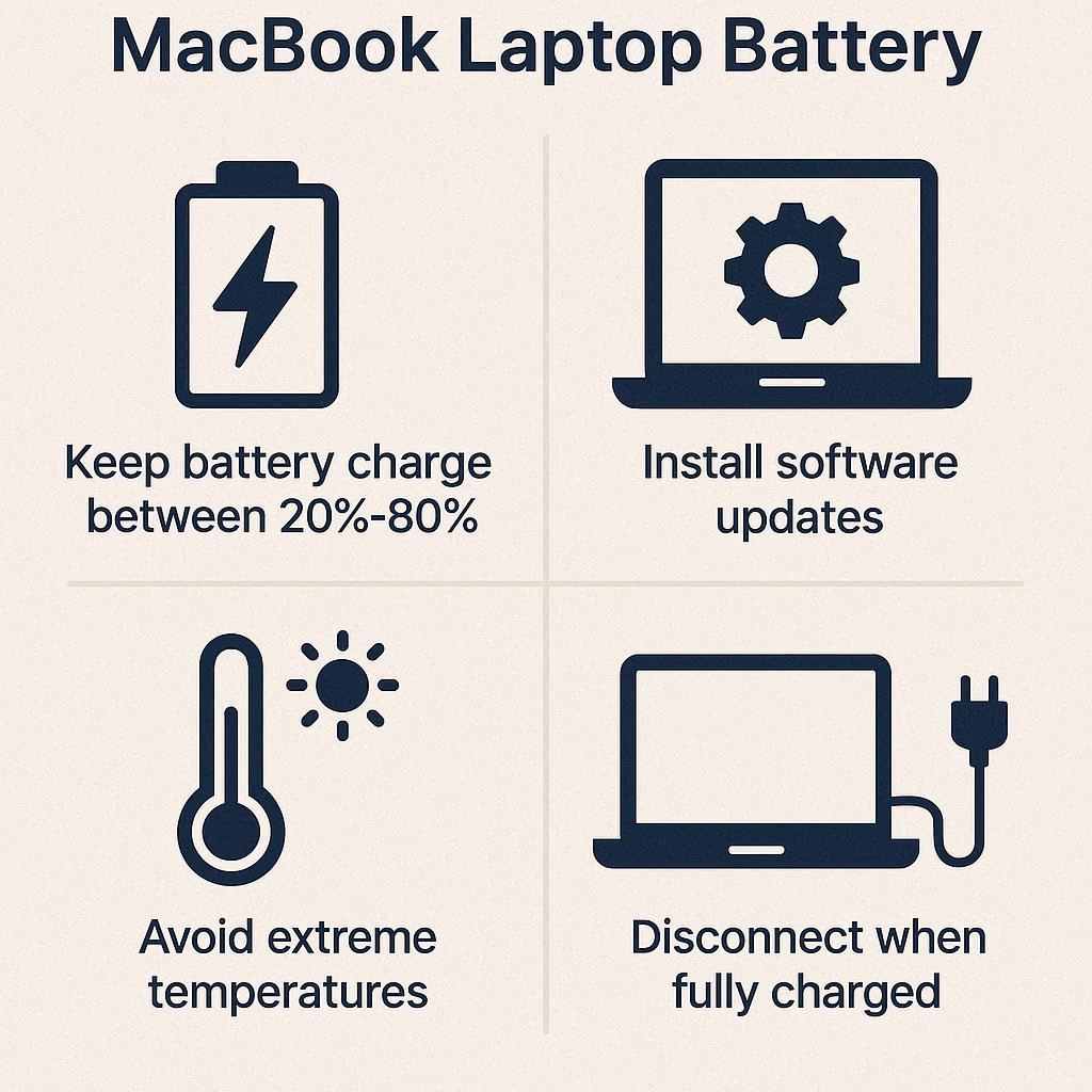 کاربران مک بوک میتوانند با رعایت چند راهکار ساده، عمر باتری پس از تعویض را افزایش دهند. از شارژ کامل ۱۰۰ درصد یا تخلیه کامل تا صفر درصد خودداری کنید و سطح شارژ بین ۲۰ تا ۸۰ درصد نگه دارید تا فشار بر سلولها کاهش یابد. اجرای همزمان برنامههای سنگین در زمان شارژ، افزایش دما و کاهش طول عمر باتری را به همراه دارد، بنابراین مدیریت مصرف انرژی ضروری است. کاهش روشنایی صفحه، فعال کردن Low Power Mode و بستن برنامههای پسزمینه پرمصرف باعث بهبود شارژدهی میشود. نظافت منظم پورت شارژ و بررسی اتصال کانکتورها، عملکرد صحیح باتری را تضمین میکند. رعایت این موارد ساده به کاربران کمک میکند از نیاز زودهنگام به تعمیر و تعویض باتری لپ تاپ اپل جلوگیری کنند و از عملکرد پایدار و شارژدهی طولانی مک بوک خود بهرهمند شوند، در حالی که عمر مفید باتری در بلند مدت به حداکثر میرسد.