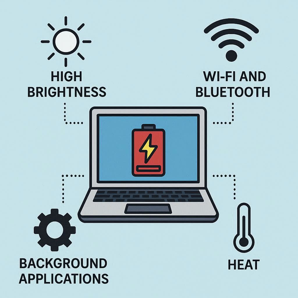دماهای بالا، شارژ کامل طولانی، استفاده از باتری غیر اصل و اجرای نرمافزارهای سنگین.