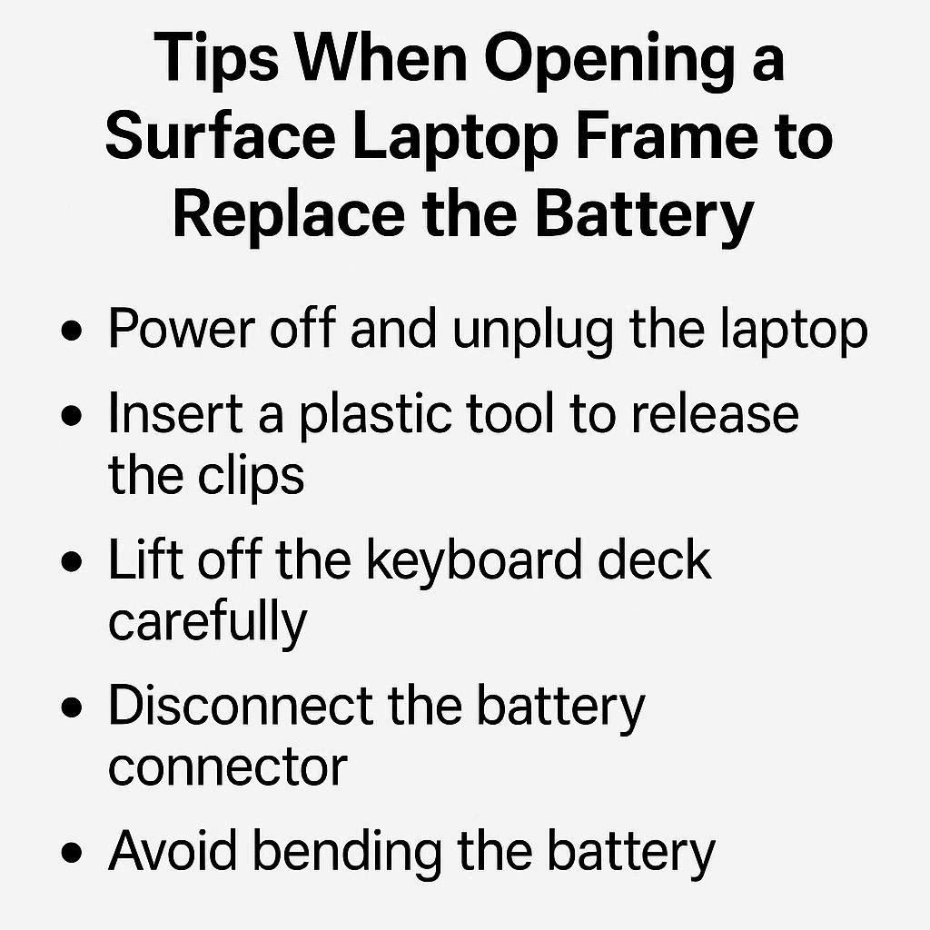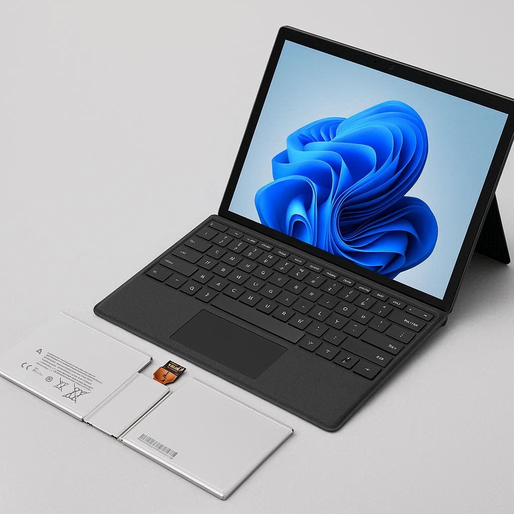 “In most Surface models the battery is glued behind the display assembly so attempting a DIY swap without the right tools risks cracking the screen.”