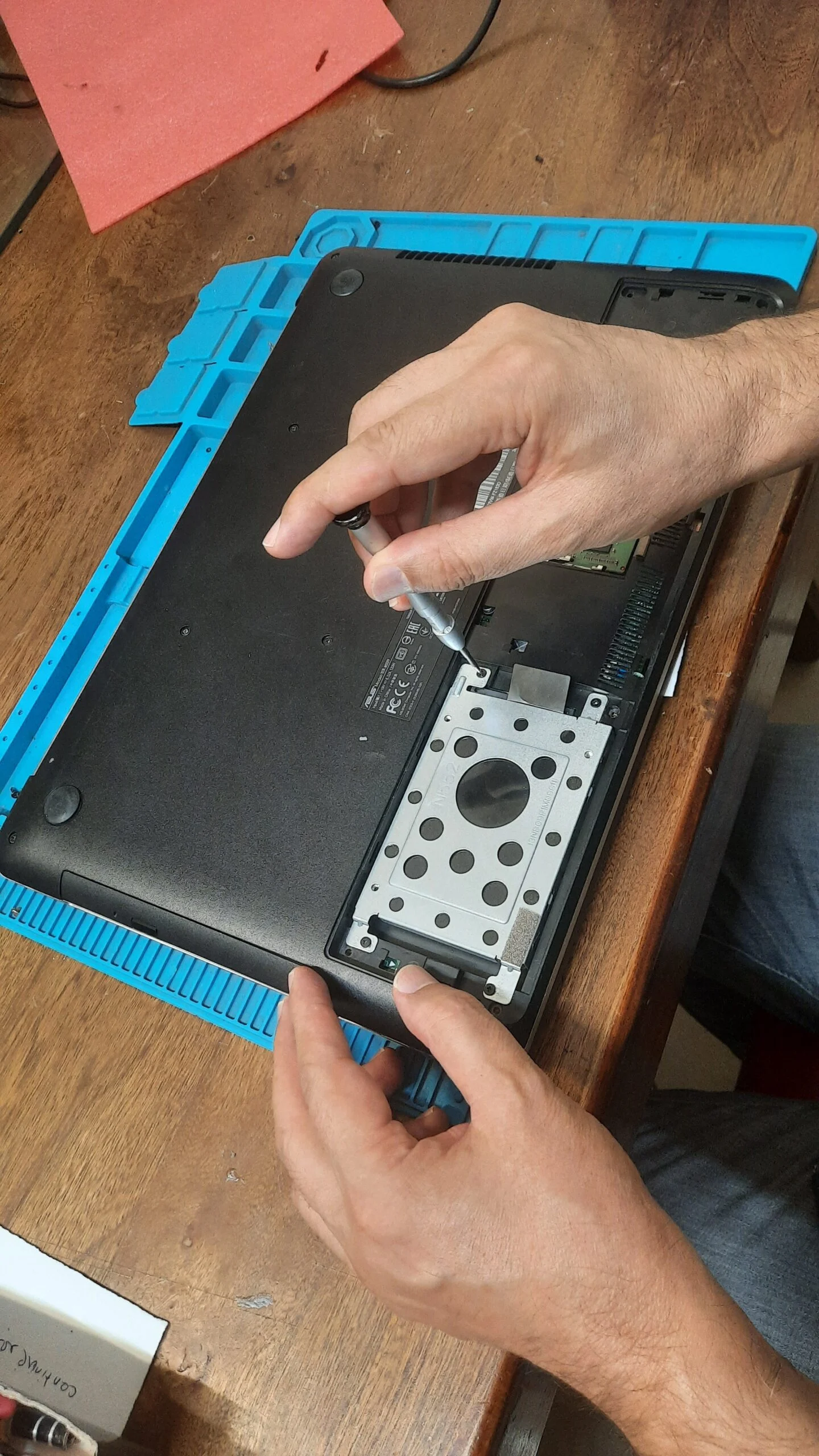 پیچهای درب لپ تاپ باز شده را ببندید. اگر باتری لپ تاپ خود را جدا کردهاید آن را وصل کنید.