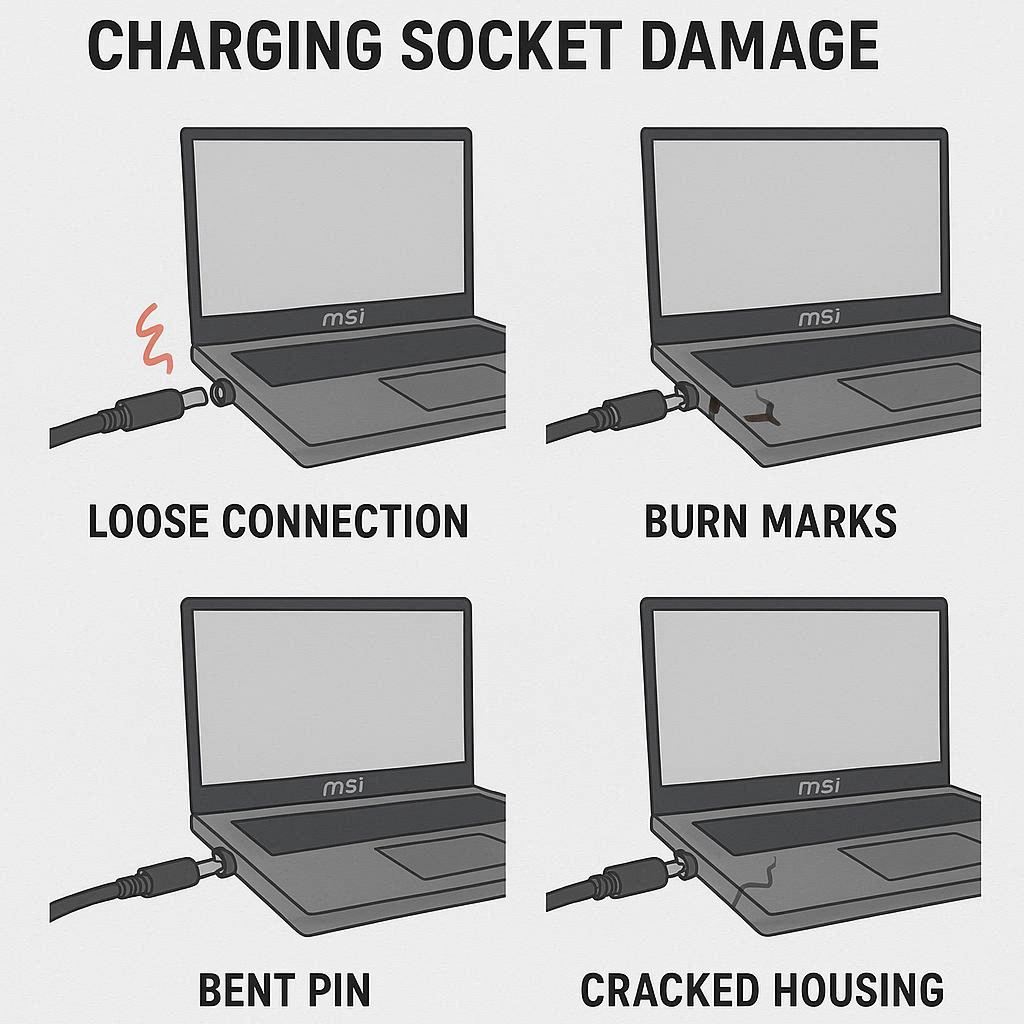 نشانههای آسیب سوکت شارژ MSI