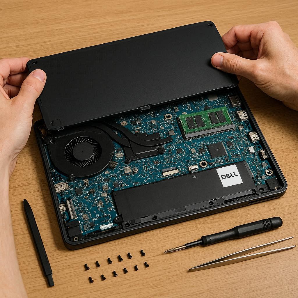 باز کردن لپ تاپ دل برای دسترسی به سوکت شارژ