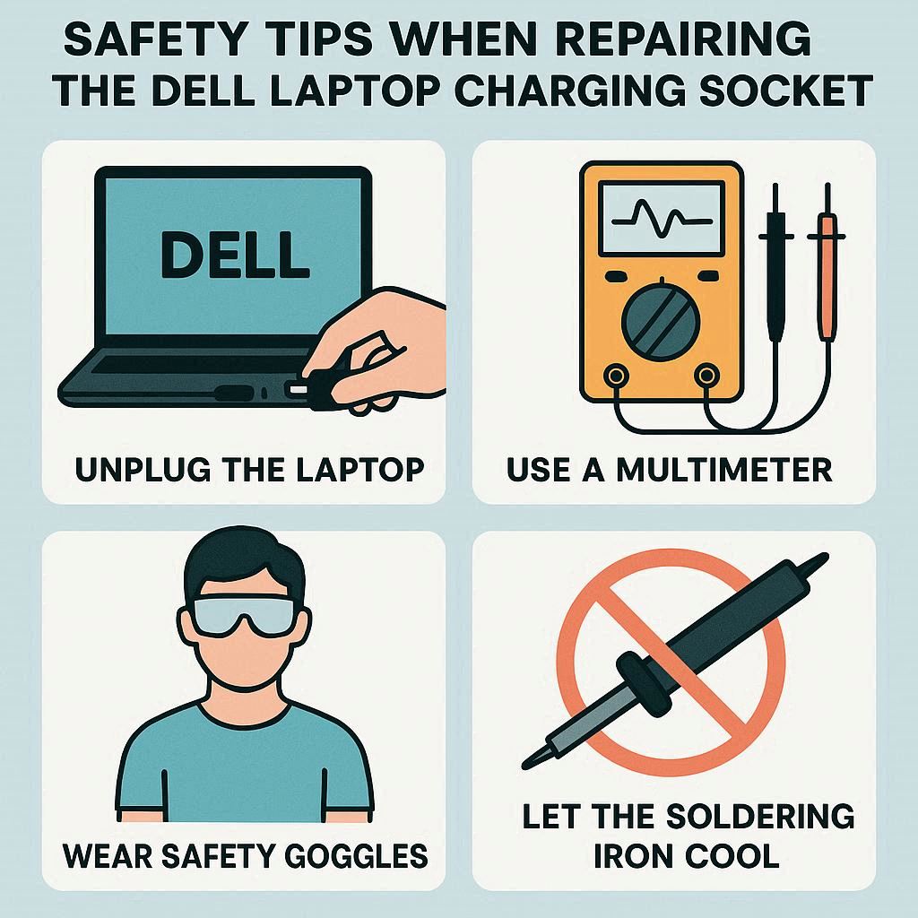نکات ایمنی هنگام تعمیر سوکت شارژ لپ تاپ دل
