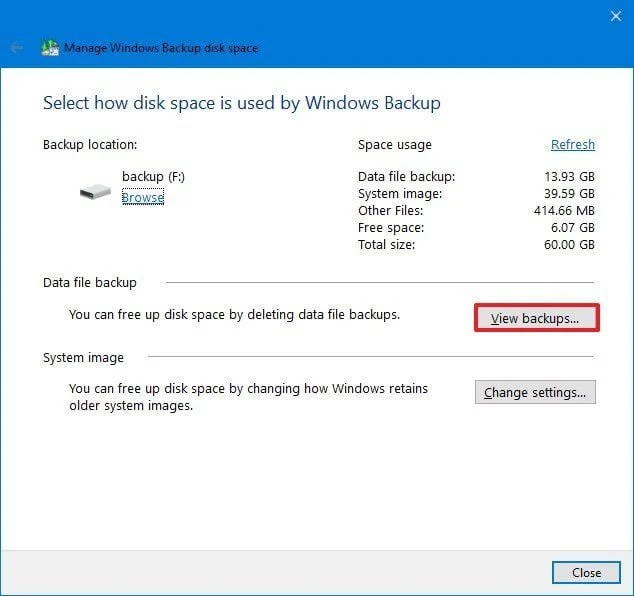 برای آزاد کردن فضای درایو پشتیبان، از این مراحل استفاده کنید: