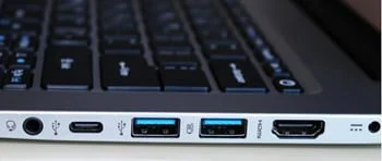 یک لپ تاپ معمولی دارای پورتهای USB، VGA، HDMI، اترنت، جک 3.5 میلیمتری صدا و اسلاتهایی برای خواندن کارت SD است.