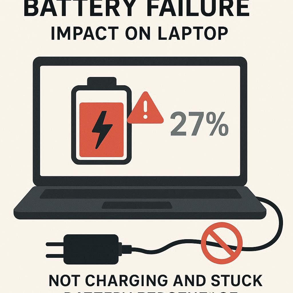 خرابی باتری و تأثیر آن بر شارژ نشدن لپتاپ و گیر کردن درصد باتری