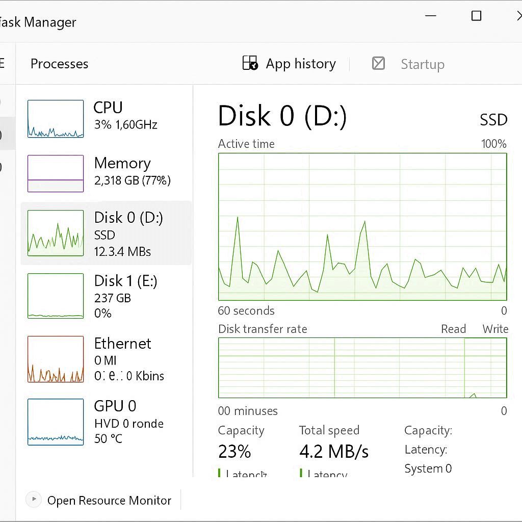 Task Manager علاوه بر نمایش نوع هارد، امکان بررسی عملکرد لحظهای آن را هم فراهم میکند. این ویژگی مخصوصاً برای کاربرانی که میخواهند سرعت سیستم خود را تحلیل کنند اهمیت دارد. وقتی در بخش Disk به اطلاعات نگاه میکنید، میتوانید میزان استفاده از هارد، سرعت انتقال دادهها و زمان پاسخدهی آن را مشاهده کنید. اگر ویندوز روی هارد SSD نصب شده است یا HDD، نتایج نمایش دادهشده در Task Manager میتواند بهخوبی تفاوتها را نشان دهد. برای مثال، در SSD معمولاً سرعت خواندن و نوشتن بسیار بالاتر است و درصد استفاده از حافظه پایدارتر به نظر میرسد. در حالی که در HDD، نوسانات بیشتری دیده میشود و سرعت پایینتر است. این ابزار برای کاربرانی که قصد دارند بدون نصب نرمافزار اضافی، نوع هارد خود را بشناسند، بهترین گزینه محسوب میشود. به همین دلیل Task Manager نه تنها یک ابزار مدیریتی، بلکه روشی ساده و مطمئن برای تشخیص نوع هارد در ویندوز است.
