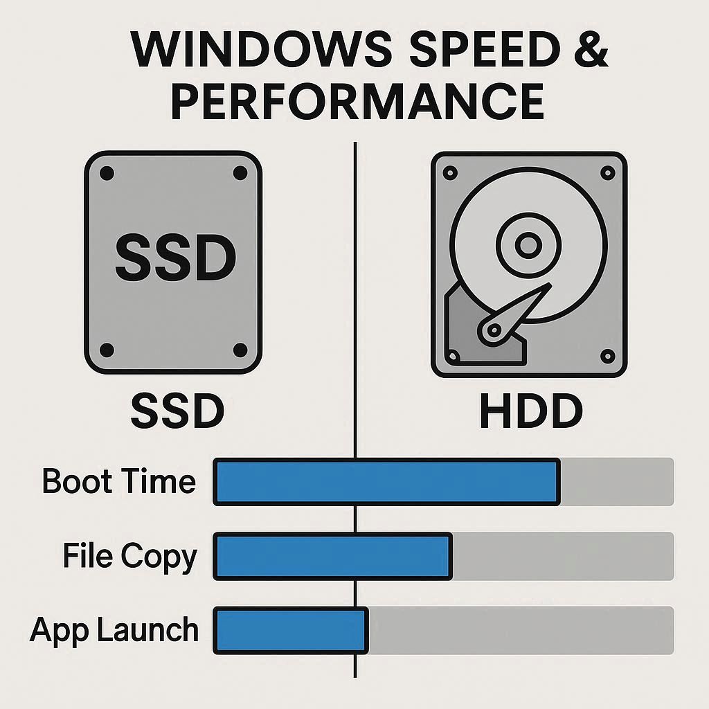 SSDها معمولاً چند برابر سریعتر از HDDها هستند و بوت و اجرای برنامهها را تسریع میکنند.